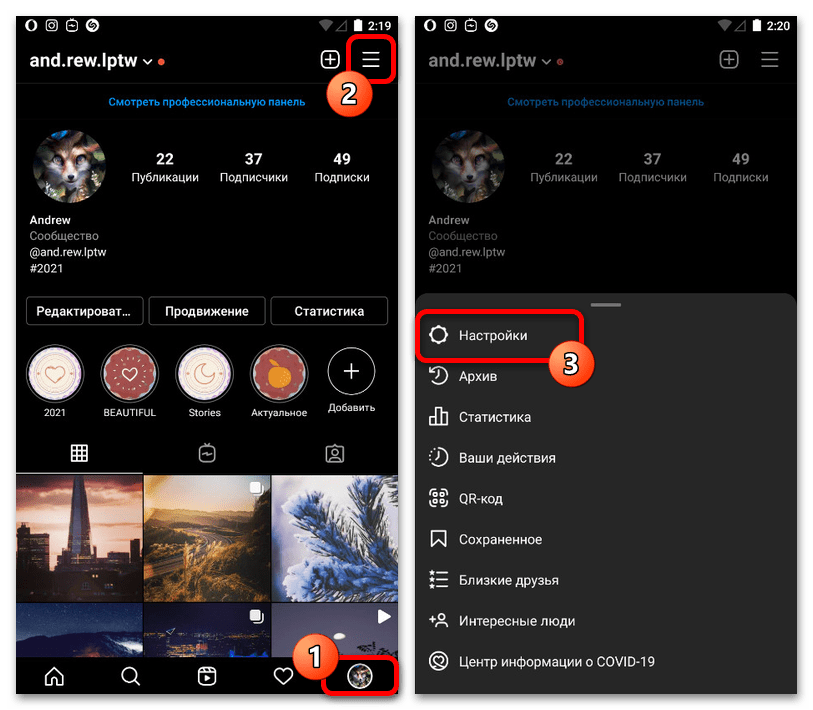 - войти в настройки (иконка «троеточия») в верхней правой части экрана;