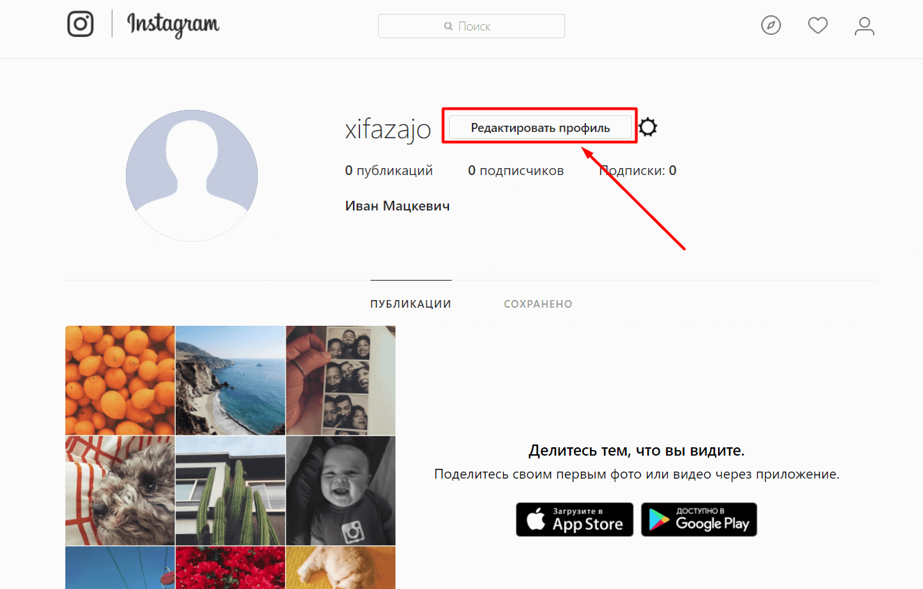 - Выбрать «Редактировать профиль» (кнопка под шапкой с именем и аватаркой пользователя).