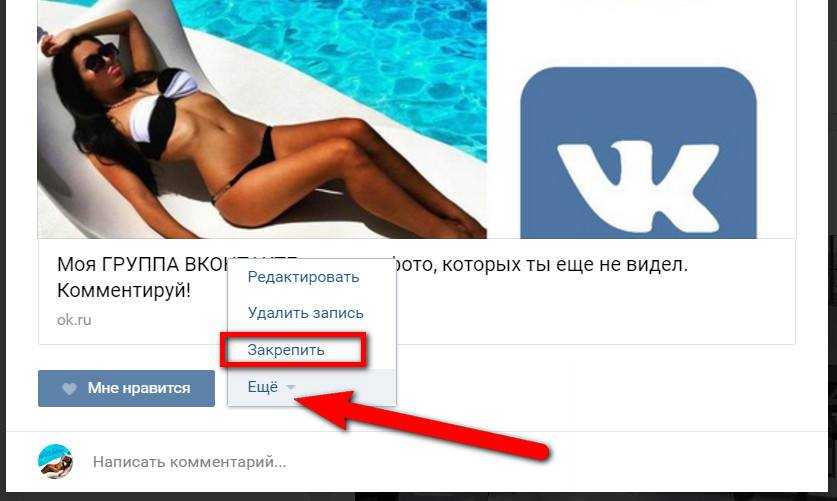 Рис 21. Найдите ссылку с названием «Еще» наведите курсор и кликните на слово «Закрепить»