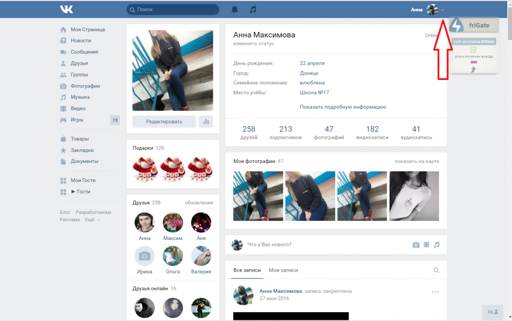 Затем вам необходимо зайти на свою страничку вконтакте и заняться записью на стене.