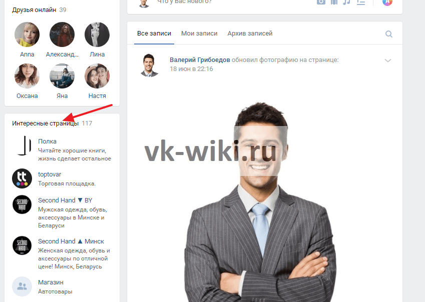В полной компьютерной версии сайта сделать это довольно просто. Достаточно просто перейти в свой личный профиль и нажать на название раздела «Интересные страницы», который находится под разделом с «Друзьями онлайн».