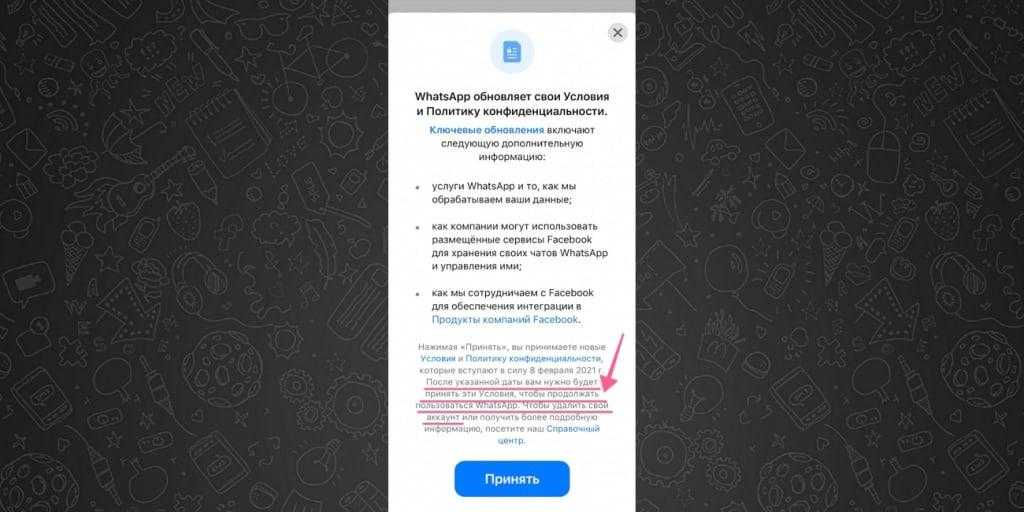 Если не принять новые условия приватности, WhatsApp не удалит аккаунт +17