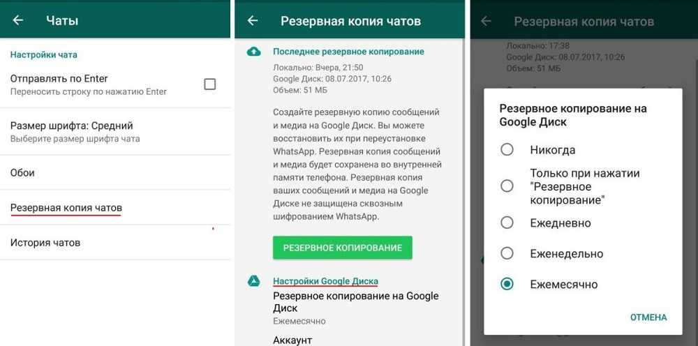 - Открыть настройки WhatsApp и нажать “Чаты и звонки” – “Резервное копирование”.