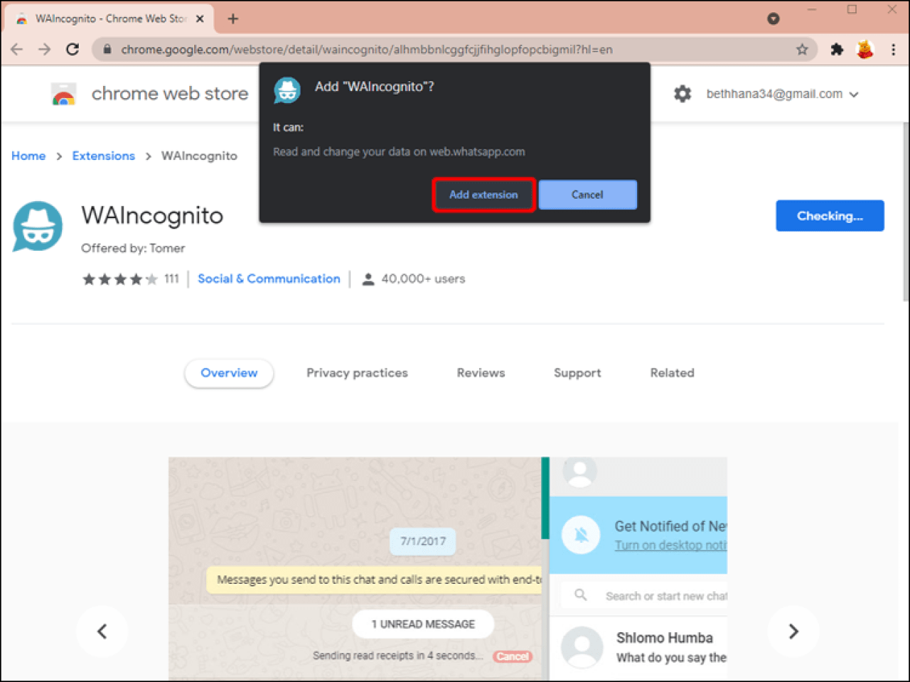 1. Откройте магазин Web Store в Chrome и найдите расширение WAIncognito.