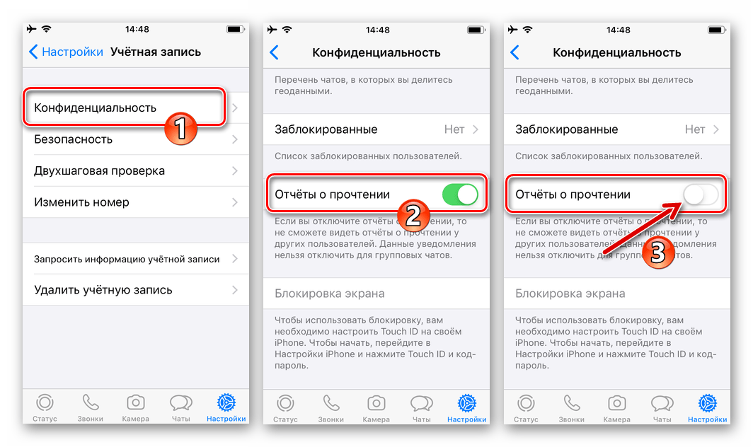 Если пользователь не хочет полностью блокировать отправку уведомлений о прочтении, а намерен скрыть этот факт от одного из абонентов, то ему после ознакомления с сообщением нужно пометить его непрочитанным.