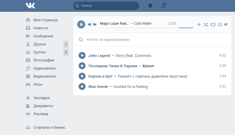 Для меломанов плеер ценен не только возможностью скачивания треков из социальной сети, но доступом к композициям на страницах у друзей и сообществ.