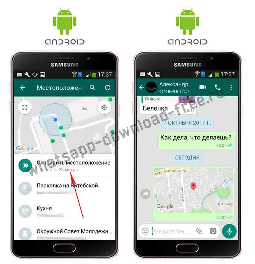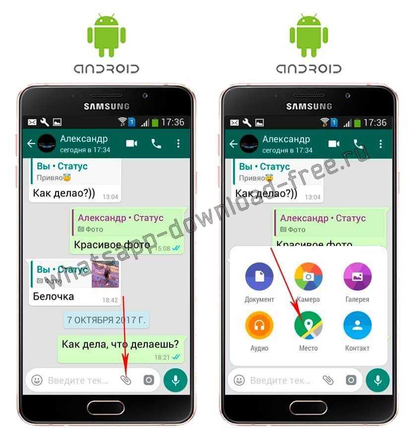 Разберемся, как поделиться местоположением в Ватсапе на устройстве с Android: