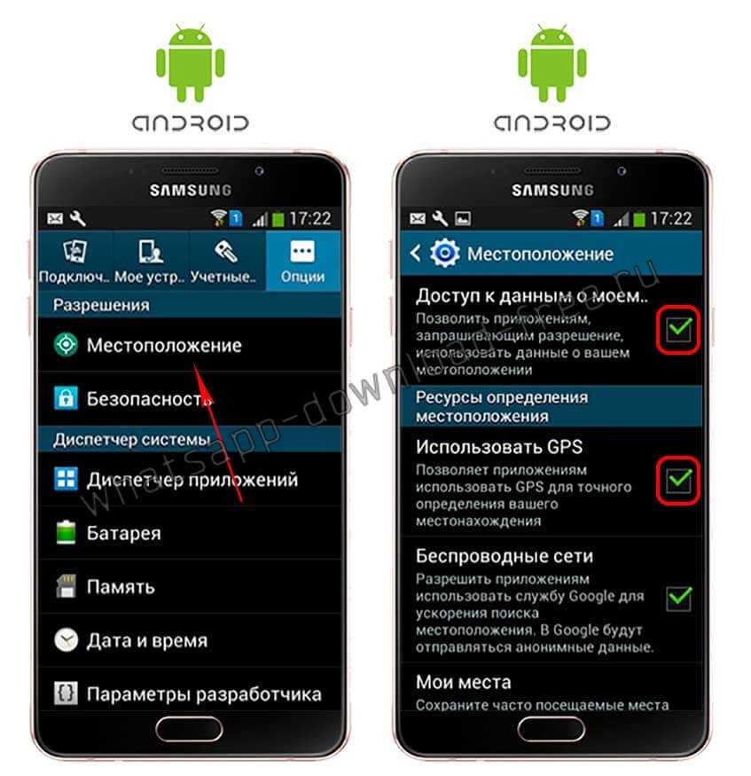 - убедитесь, что в настройках приложений у WhatsApp есть доступ к местоположению устройства;