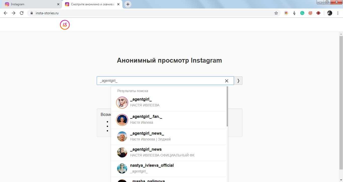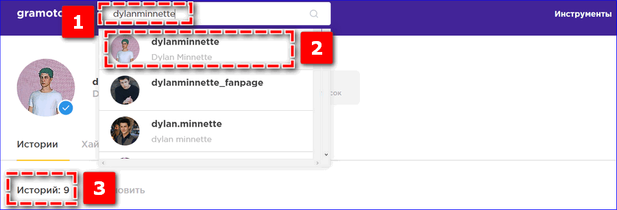 Принцип работы всех сервисов идентичен. Требуется открыть на официальном сайте Instagram страницу пользователя, сохранить URL-адрес или никнейм в буфер обмена, затем вставить значение в поисковую строку платформы. Выбрать в перечне подходящий аккаунт и перейти во вкладку «Истории».