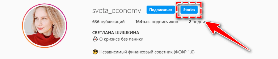 StoriesWatcher – для просмотра кликните на иконку Stories справа от кнопки «Подписаться» на странице нужного человека.