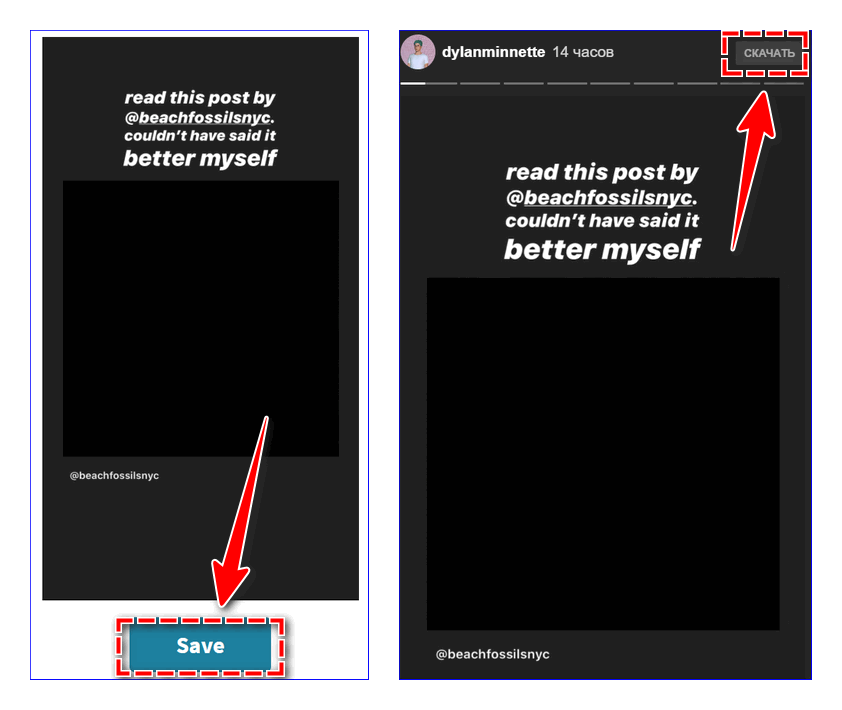 - Загрузка инстаграмм историй в галерею смартфона;