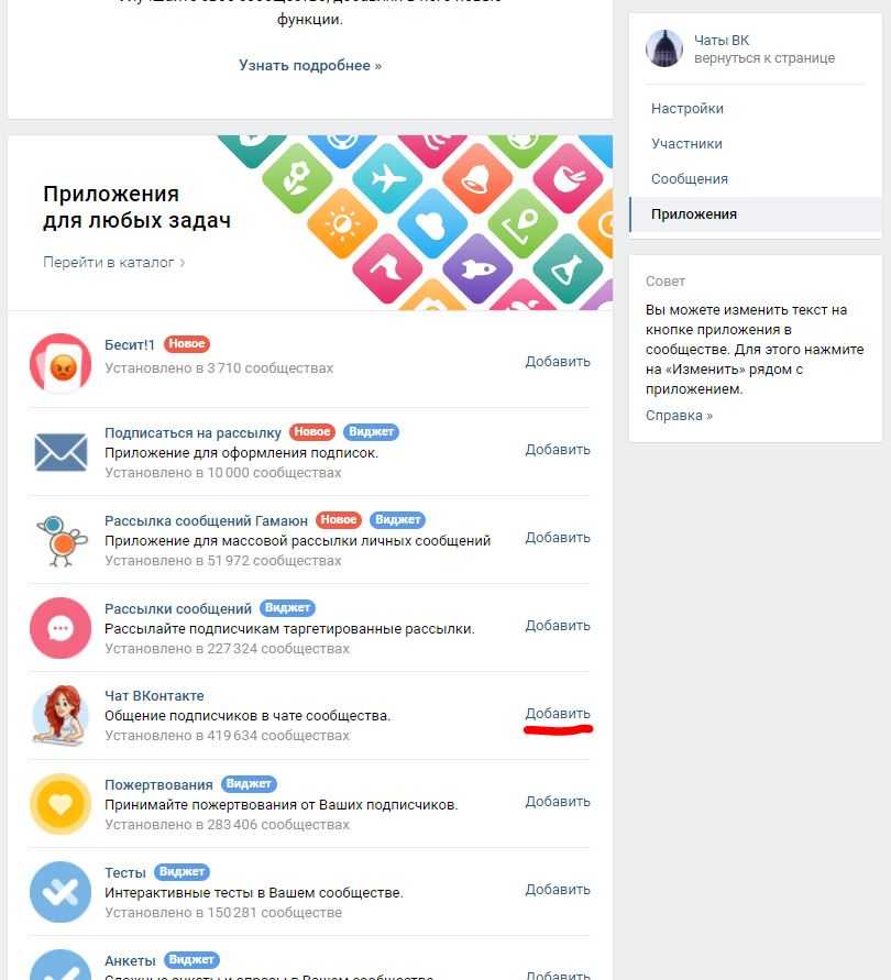 Если Вы уже использовали в своем паблике какие-либо приложения и виджеты, то Вы должны также примерно понимать, как включается чат.