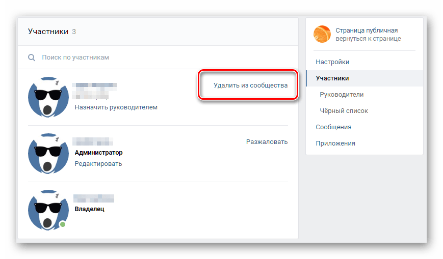 И, наконец, удалите участников. К сожалению, это делается только вручную. Зайдите в «Управление сообществом» и кликайте «Удалить из сообщества» возле каждого подписчика.