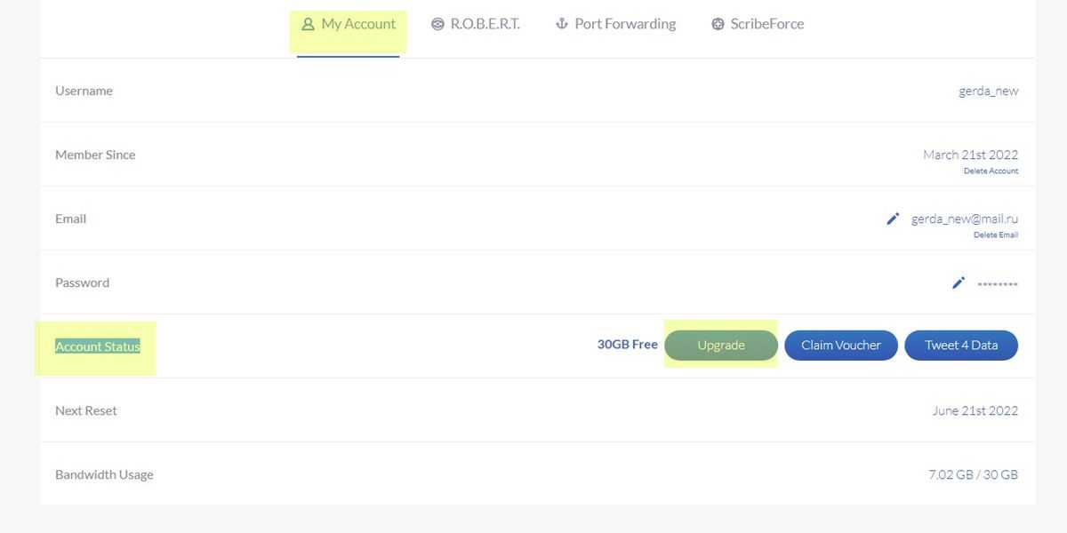 После регистрации зайдите в настройки аккаунта, найдите Account Status → Upgrade – здесь можно ввести промокод, который даст возможность использовать один или даже несколько десятков Гб в месяц бесплатно, или выбрать платный тариф.
