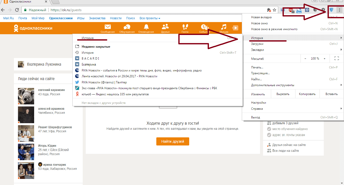 В самом браузере регистрируется не только сам факт захода на «Одноклассники», но и список страниц, которые посещал человек. Это значит, что любой другой при наличии доступа к компьютеру или телефону может это проверить. Как удалить историю посещений в «Одноклассниках»? Рассмотрим пример на Google Chrome (в других браузерах действия аналогичны).