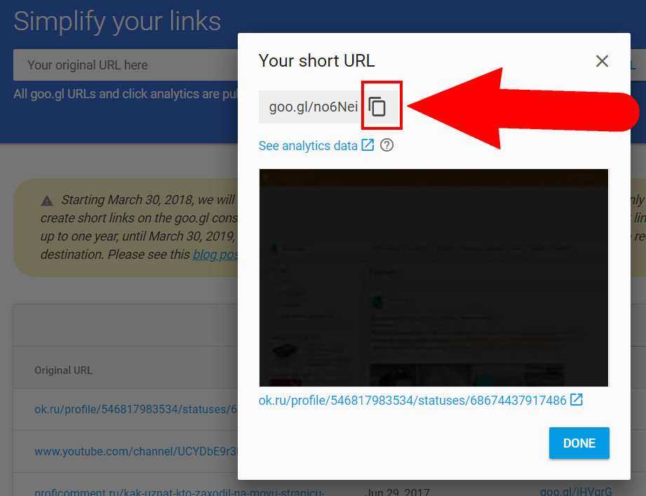 Теперь у нас есть ссылка, но она нам не подходит, так как по ней сразу можно понять, что она приведет в одноклассники. Выйти из ситуации нам поможет Google. У него есть удобный сервис укорочения и, одновременно, маскировки ссылок. Хотя не только Гугл может сокращать и маскировать ссылки. Существует и много других сервисов: