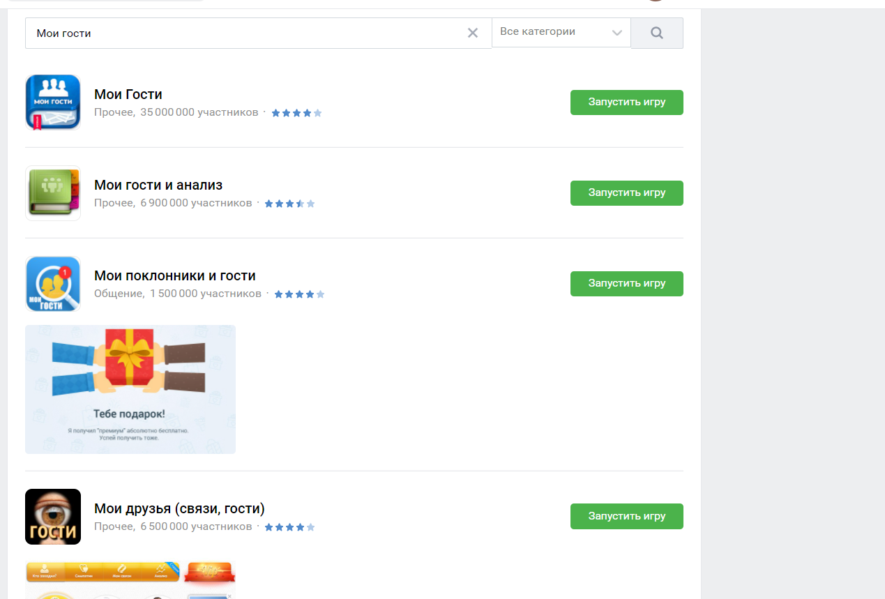 Все они имеют схожую структуру и принцип действия: можно проверять «гостей», «поклонников», продвигать свой профиль и т.д. поэтому выбирать можно на свой вкус. Но, стоит учитывать, что не все подобные «игры» показывают реальную статистику, и чаще всего это будут просто люди, проявлявшие активность на вашей странице.