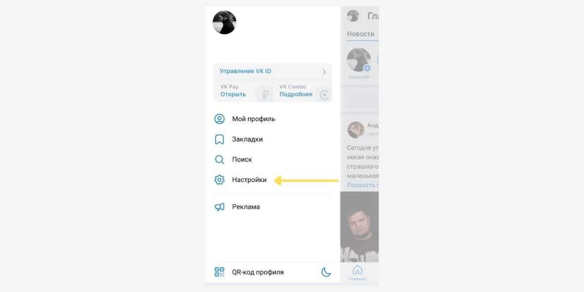 Выберите раздел «Настройки». Он находится под блоком VK ID.