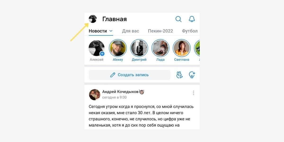 Зайдите в мобильное приложение ВКонтакте и откройте VK ID. Для этого на главной странице кликните по значку вашей аватарки.