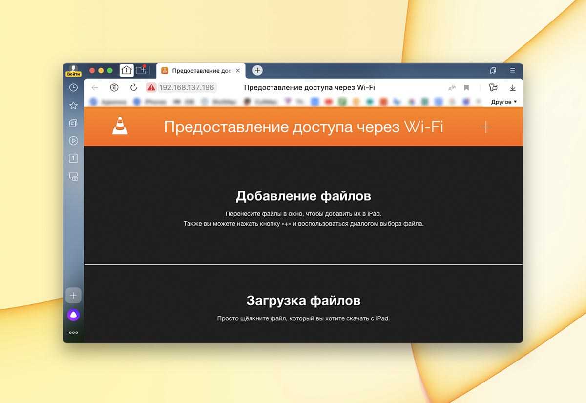 ◉ Активируйте опцию Предоставление доступа через Wi-Fi и откройте указанный адрес в любом браузере на компьютере.