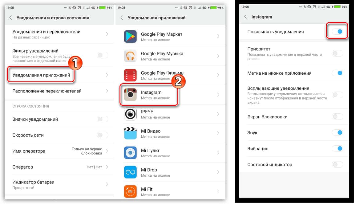 1 — включаем push-уведомления от приложения Instagram в самом устройстве