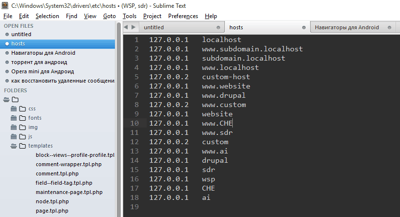- Возможно, будет 2 файла hosts, в таком случае нужно проверить и второй на наличие лишних строк.