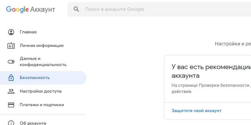 - Перейдите в настройки аккаунта Google и откройте раздел «Безопасность».