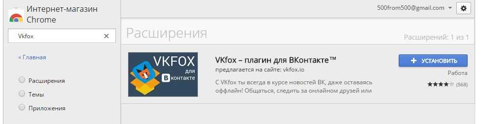 Чтобы загрузить расширение VKfox и сидеть в вк оффлайн, просто нажмите рядом с описанием «установить»