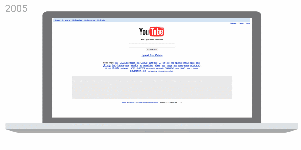 23 апреля 2005 года Джавед Карим загрузил первое видео на YouTube. В коротком ролике “Me at the zoo” сооснователь Ютуба рассказывает про слонов, у которых очень длинные хоботы. Видео довольно примитивное и не имеет особого смысла, но по-настоящему соответствует слогану „Broadcast Yourself”.