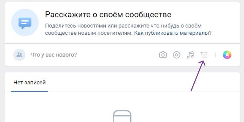 Чтобы создать статьи ВК в группе или на личной странице, зайдите в свой профиль или сообщество с компьютера, опуститесь до окошка «Что у вас нового?» и нажмите на значок справа с буквой «Т». Писать и публиковать статьи ВКонтакте с телефона нельзя.