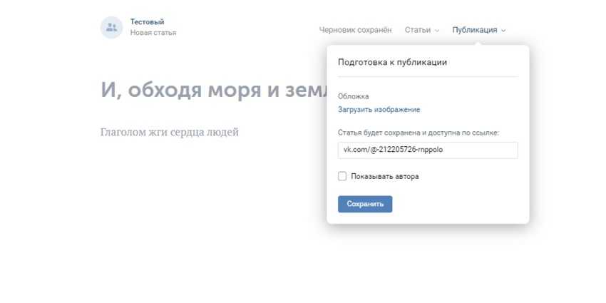Для публикации выберите нужную статью и перейдите в раздел «Публикация». Площадка не публикует статьи сразу, она дает вам ссылку на нее. Не забудьте загрузить обложку для статьи ВК. Далее вы оформляете ее как любой анонс статьи с блога в посте.