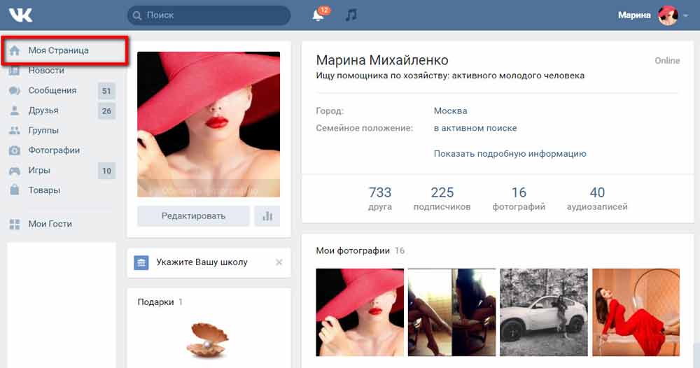 - адрес – вместо ID в строке можно прописать ник или имя на латинице.