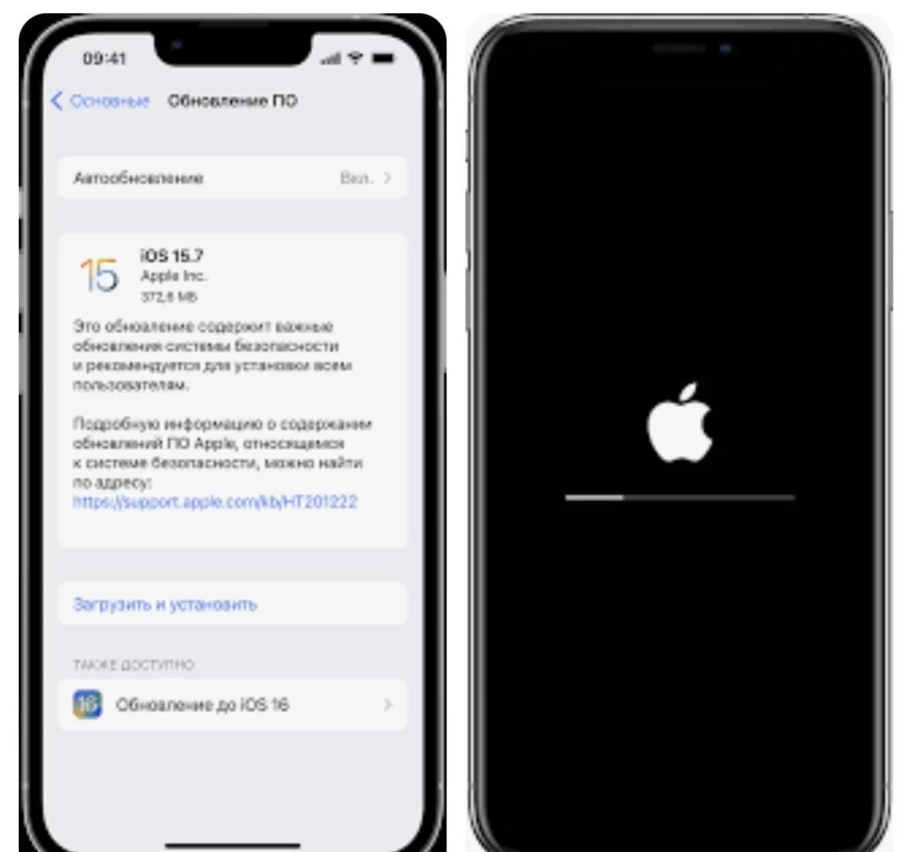 Теперь можно перейти в «Настройки» и произвести обновление. Во время процесса на экране загорится яблоко. После завершение обновления смартфон должен работать, как новый.