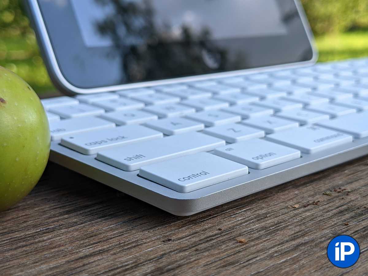 Сама клавиатура сделана на основе тогдашних Magic Keyboard для Mac, и работать за ней одно удовольствие, как и за самим iPad. Даже эту статью я пишу за ней, потому что механизм даёт фору современным Magic Keyboard.