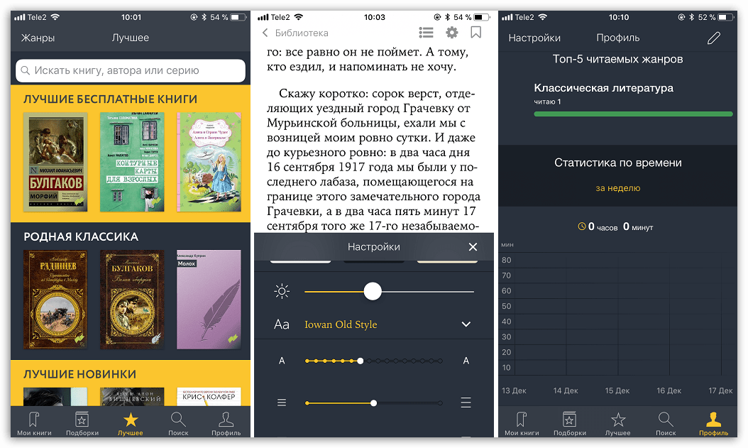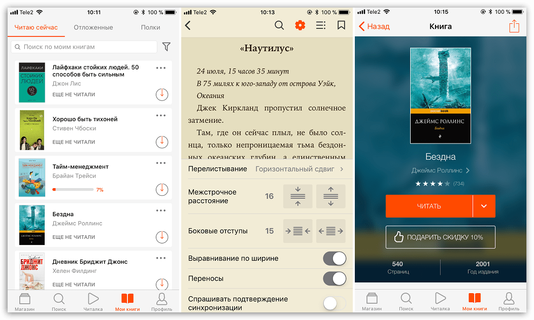 Трудно найти книголюба, который хотя бы не слышал о крупнейшей книжной площадке ЛитРес. Приложение для iPhone – это совмещение магазина и читалки, которая, к слову, на практике оказывается крайне удобной, поскольку в ней есть настройки шрифта и размера, цвета бумаги и даже параметры отступов, которые, например, в приложении iBooks непростительно большие.