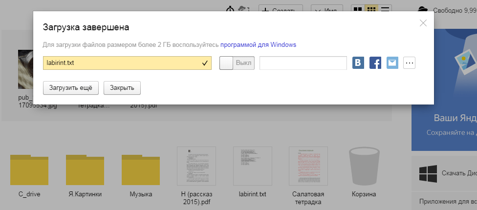 ». Появится сообщение, подтверждающее, что Яндекс. Диск