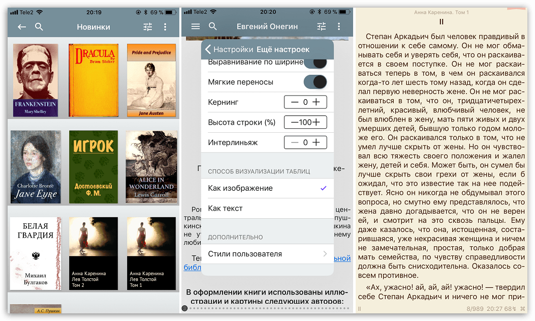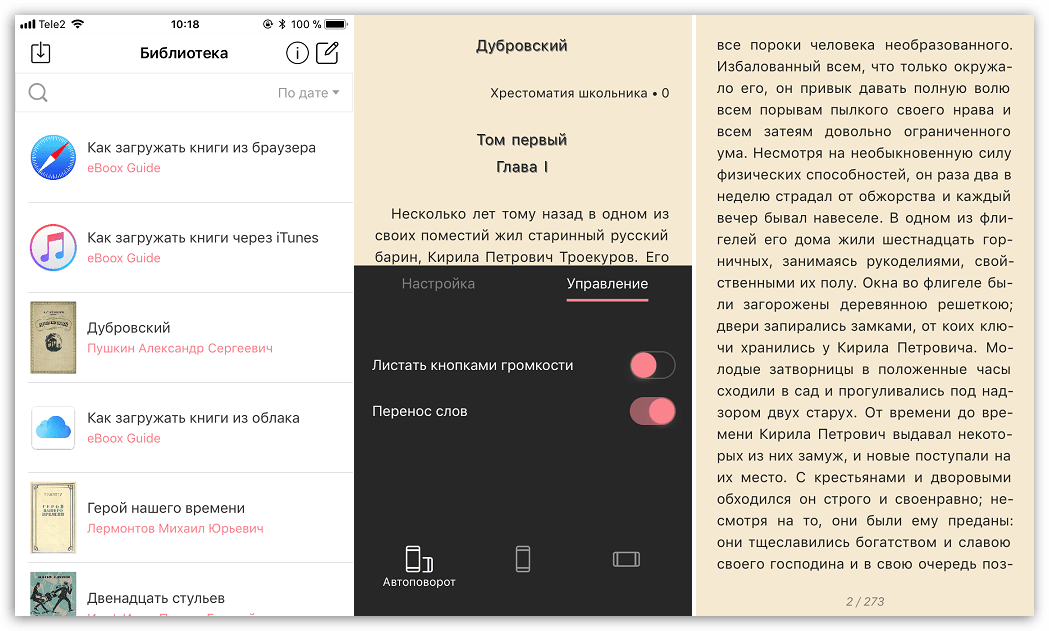 Из нюансов стоит выделить скудность поддерживаемых форматов: электронные книги можно загружать только в формате ePub (но, к счастью, на сайтах с электронными библиотеками с ним проблем нет), а также отсутствие синхронизации страниц для загруженных книг (данная функция действует только для книг, приобретенных в iBooks Store, где практически не найдется русскоязычных произведений).