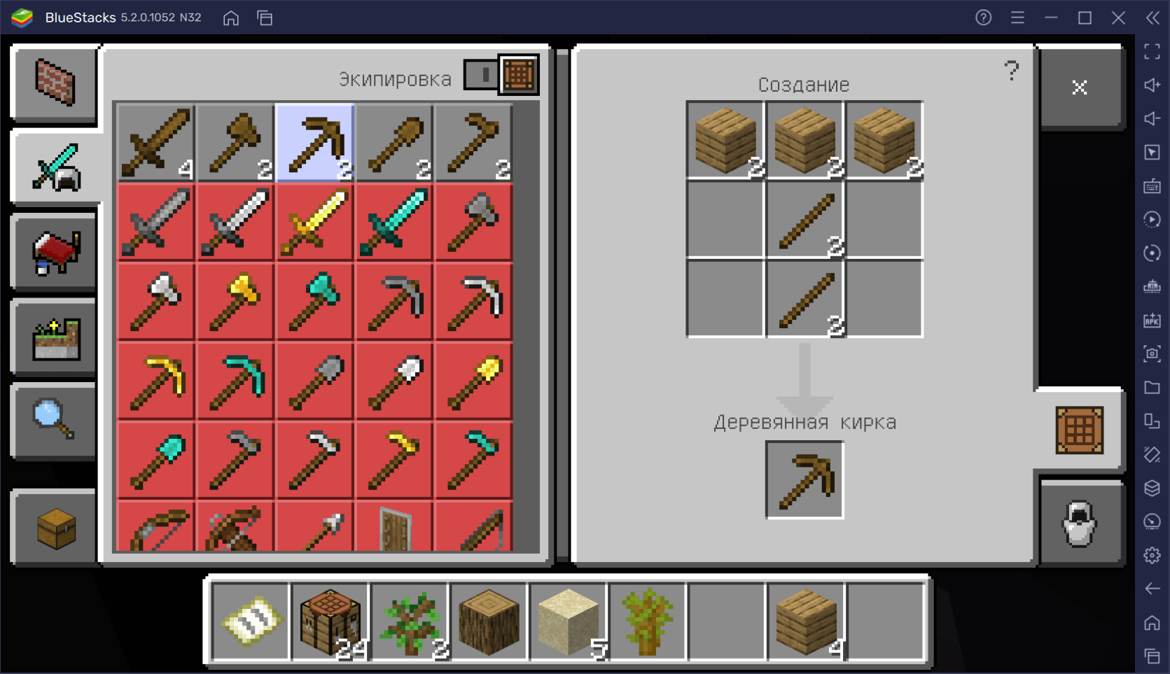 - Как выполнить: Скрафтить кирку и добыть одну единицу камня. Деревянная кирка крафтится из двух палок и 3 единиц досок.