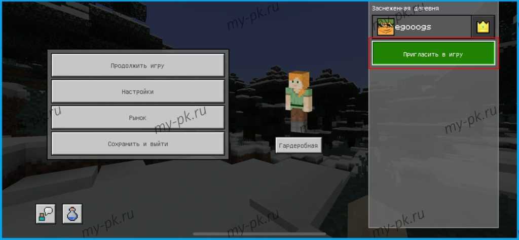 Отлично! По завершению регистрации, вы автоматически авторизуетесь в майнкрафте. Итак, что же нужно чтобы играть с другом в него? Создайте мир, а затем откройте меню и выберите «Пригласить в игру».