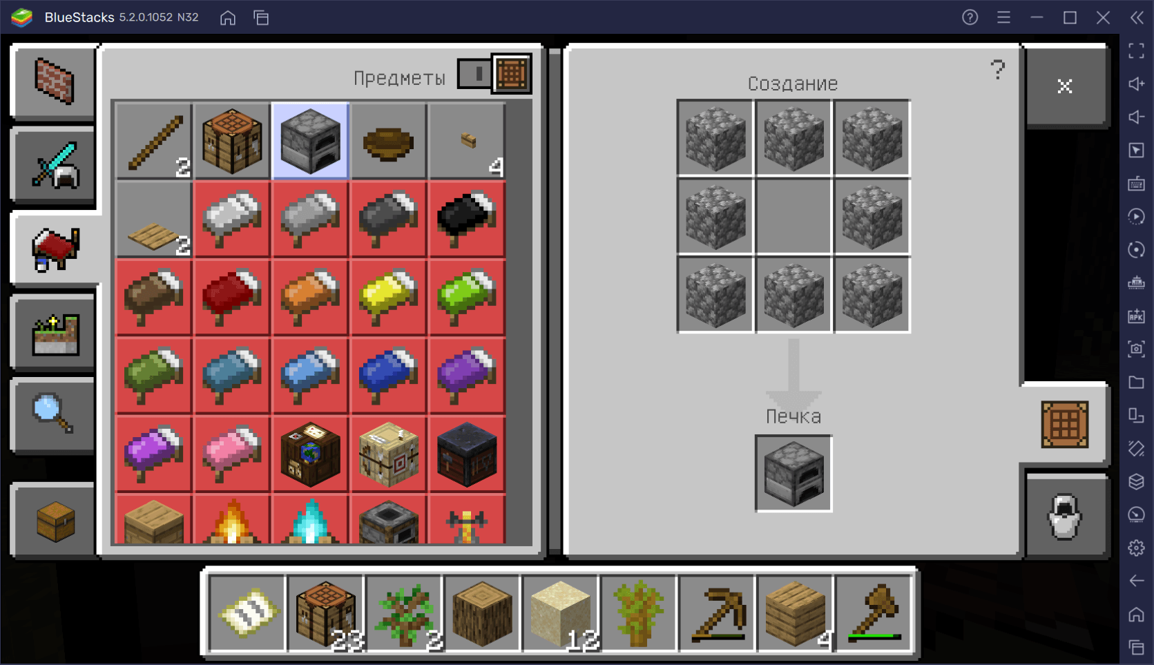Загрузив в печку необходимые материалы, можно закрыть окно печи, и заниматься своими делами – процесс идет без участия игрока.