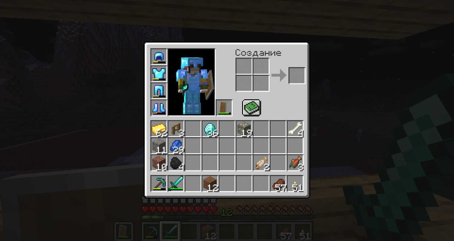 И если орудия труда вы можете сделать даже из камня и дерева, то броню возможно соорудить, только из ценных ископаемых типа: железа, золота или алмазов (возможно из чего-то ещё, если добавили в игре).