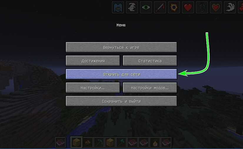 Зная свой IP-адрес в локальной сети, ты можешь приступить к созданию открытого мира. Для начала создай стандартную игру Minecraft. После этого нажми Esc и выбери пункт «Открыть для сети».