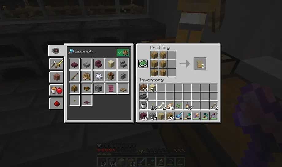 - Как выполнить: Скрафтить верстак из 4-х единиц любых досок.