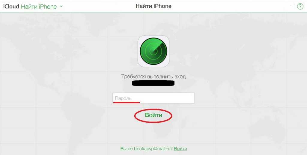 - заходим в пункт меню «Найти iPhone» (придётся ввести пароль от вашей учётной записи повторно);