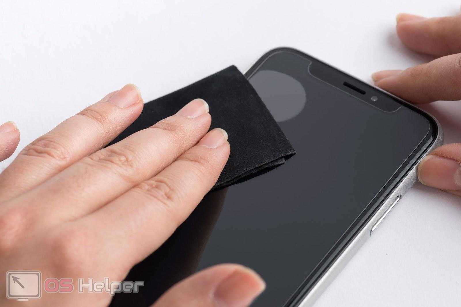 Для этого используйте жидкость для очистки дисплеев, антистатик или спирт. Тщательно удалите все пятнышки. Если вы только что сняли старую с телефона, сотрите остатки клея. После насухо протрите экран микрофиброй.