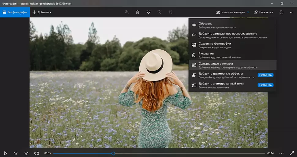 1. Найдите на компьютере нужный видеоклип и кликните по нему правой кнопкой мыши. В контекстном меню выберите пункт «Открыть с помощью», затем перейдите к приложению «Фотографии».