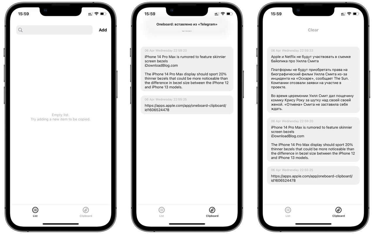 Затем в нижней части экрана вы увидите поле с различными скопированными фрагментами. При продолжительном нажатии появляется крестик в углу записи, чтобы самостоятельно удалить элемент.
