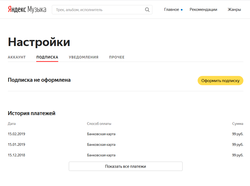 Однако, если пользователь не хочет продолжать оплачивать сервисы компании Яндекс или за время пробного периода понял, что не готов платить за платформу соответствующую сумму, то следует отменить подписку от Яндекс.Музыки, чтобы со счёта клиента не списывалась стоимость подключения.