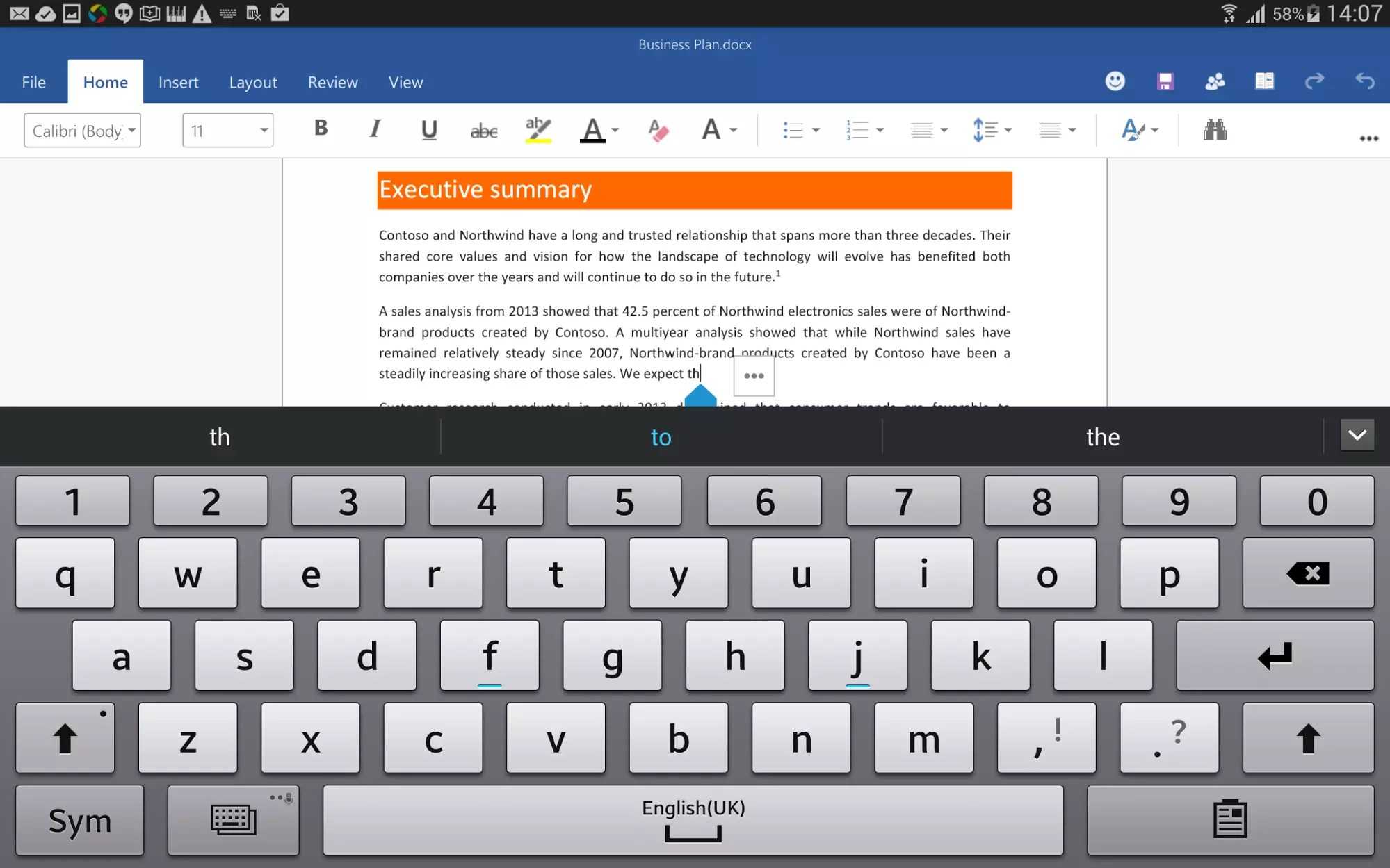 Так же есть примитивные инструменты для редактирования текста — размер шрифта, выравнивание, добавление таблиц и картинок. Создание таблиц проходит очень просто, но, как и весь процесс редактирования, сопровождается тормозами — это довольно неожиданно для несамого слабого мобильного процессора (2 ядра по 1Ггц). Не смотря на это, если не нервничать, владельцы планшетов смогут вполне комфортно поработать и напечатать что-то интересное =)