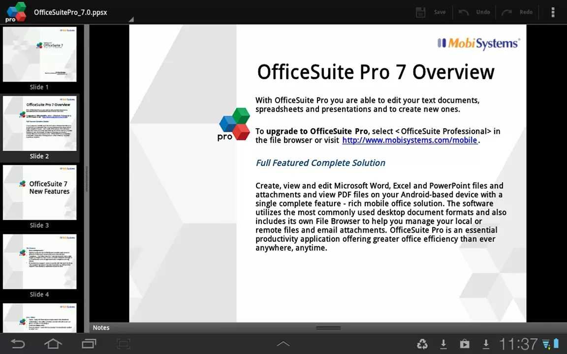 Программа входит в число лучших бизнес-приложений по версии Google Play, и она получила престижную награду в 2018 году. Приложение поддерживает большинство форматов так, что пользователь может открыть почти любой файл. Помимо текстовых документов, можно работать с таблицами, презентациями и pdf файлами. Скачать приложение для открытия документов на андроиде можно бесплатно, пользователю предложат обновиться до пробной, платной версией, с возможностью попробовать 30 дней бесплатно.